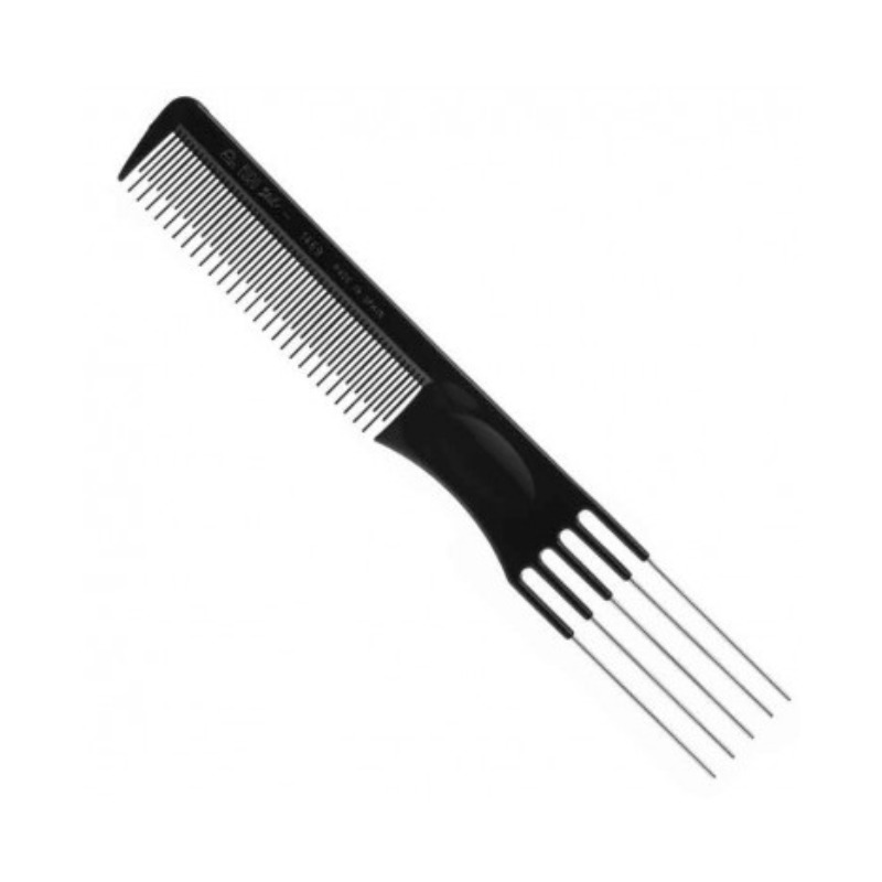 - Επαγγελματική χτένα κρεπαρίσματος με ασσύμετρα δόντια και μεταλλική ουρά.
