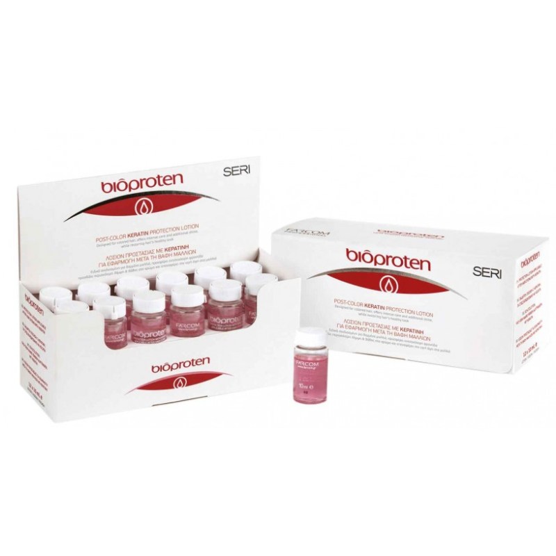 Οι αμπούλες BIOPROTEN με κερατίνη συμβάλλουν στην επαναφορά και προστασία της υγιούς όψης των μαλλιών μετά την βαφή, ενώ προσδίδουν ενισχυμένη λάμψη αναδεικνύοντας περισσότερο το χρώμα τους.