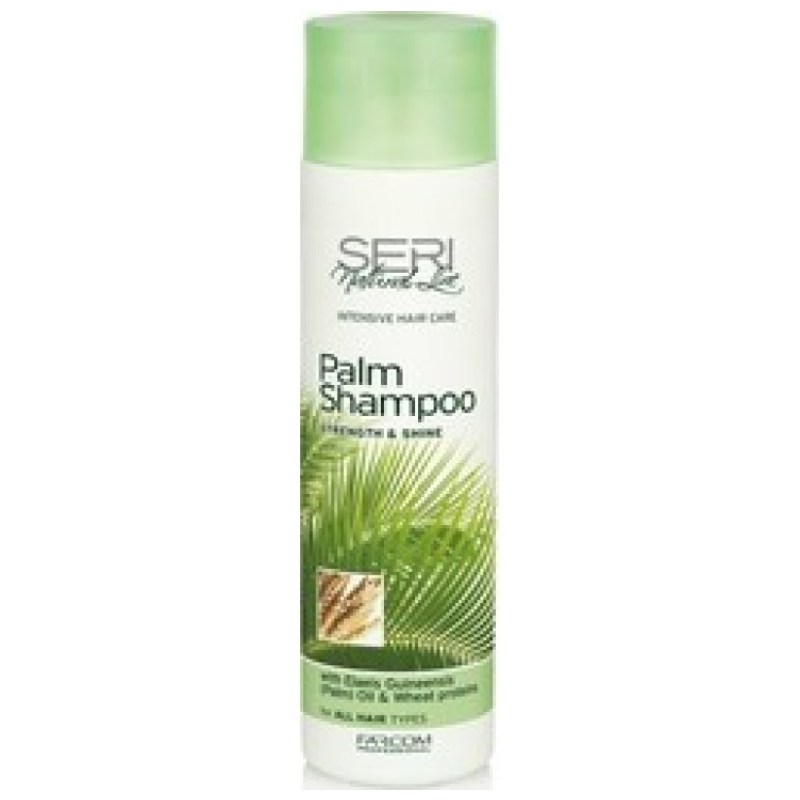 Το Palm Shampoo της σειράς προϊόντων SERI Natural Line περιποιείται και αναζωογονεί τα μαλλιά. Περιέχει έλαιο φοίνικα και συνδυασμό βιταμινών και πρωτεϊνών από σπόρο σιταριού που εισχωρούν στην τρίχα, την ενισχύουν και την ενυδατώνουν σε βάθος, χαρίζοντας στα μαλλιά λάμψη, ζωντάνια και δύναμη. Ιδανικό για το λούσιμο των μαλλιών μετά την εφαρμογή του Palm Butter SERI Natural Line. Ολοκληρώστε τη περιποίηση των μαλλιών με την αναζωογονητική μάσκα Palm Ηair Μask SERI Natural Line.